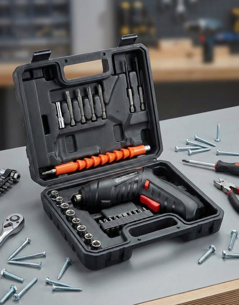 Rechargeable Cordless Screwdriver Kit (47 Pcs) – Multi-Function Electric Drill Set with Flexible Shaft, Screw Bits, Sockets & Carrying Case for DIY Home Repairs